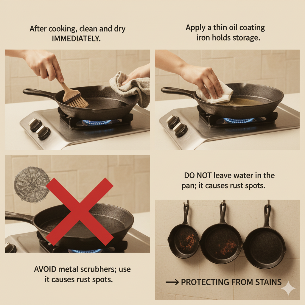 - After cooking, clean and dry immediately.
