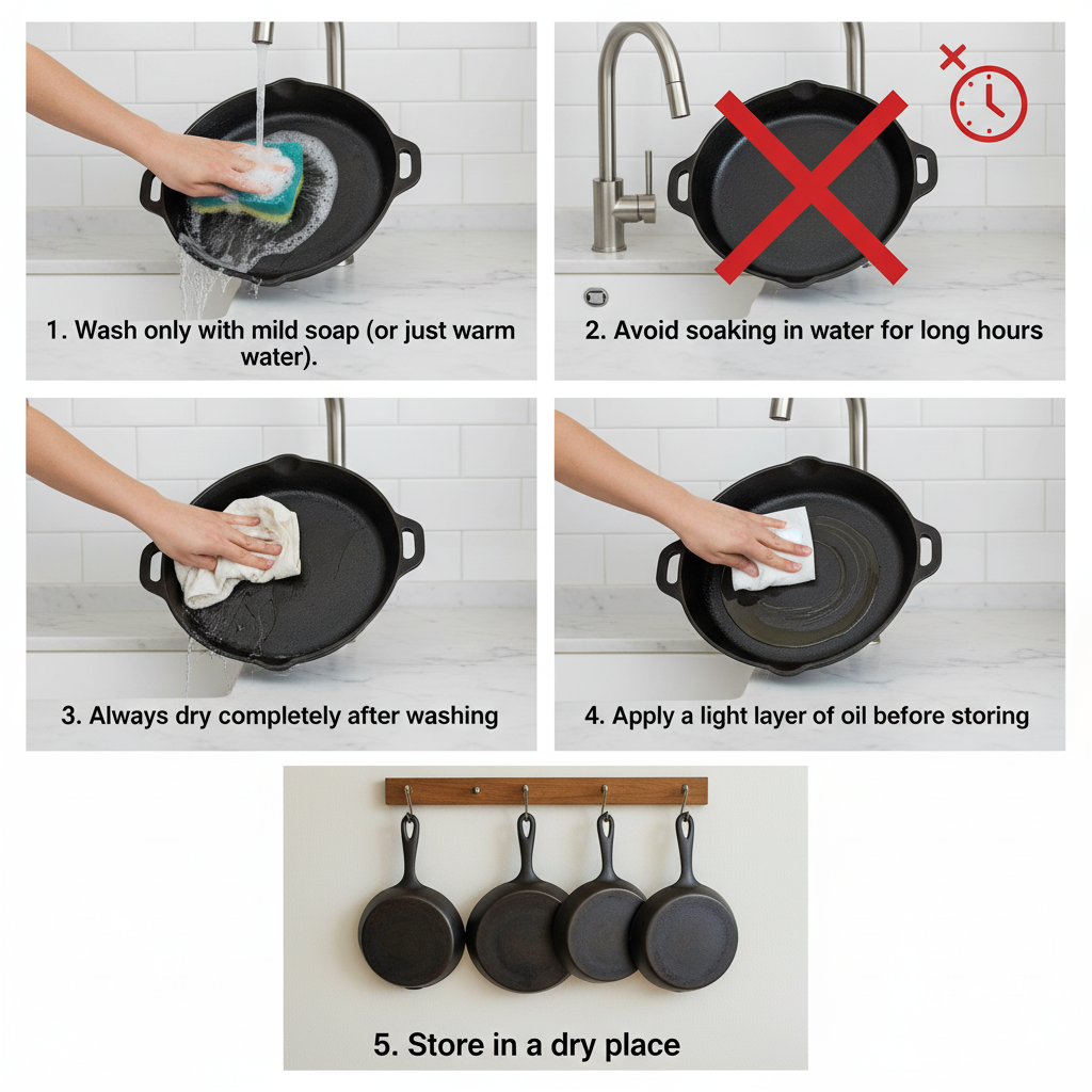 - Apply a light layer of oil before storing.